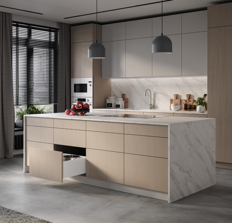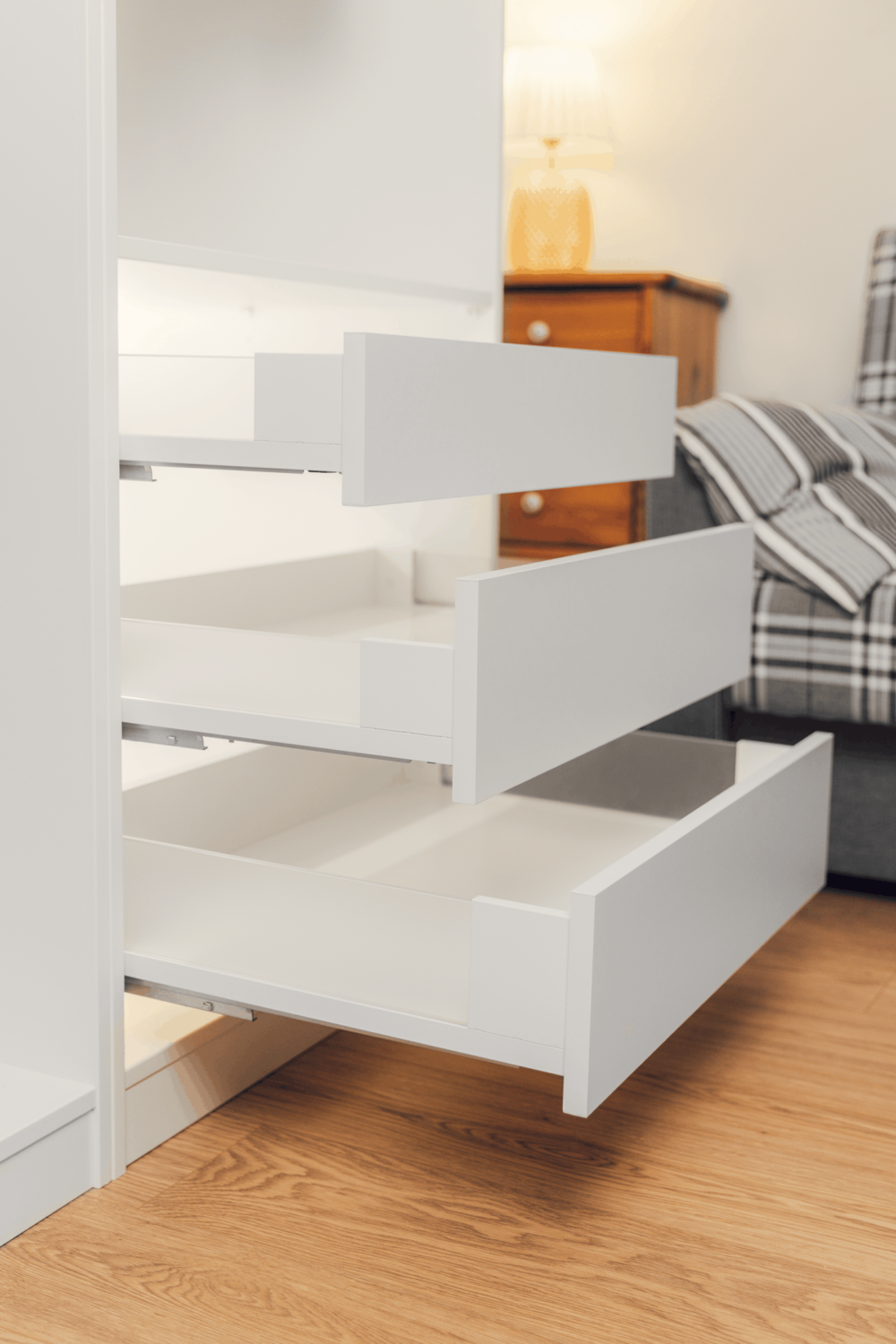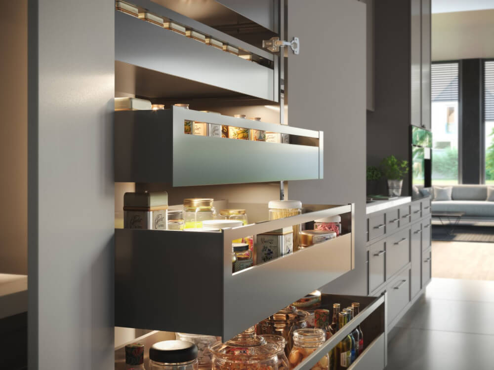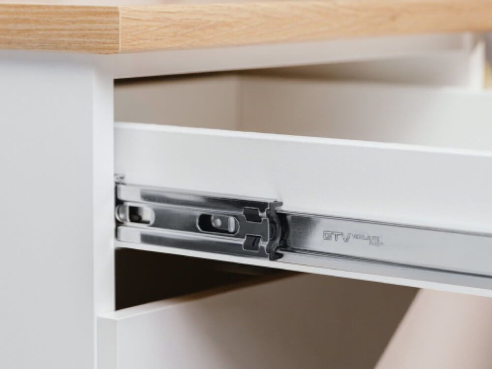 Szuflada AXIS PRO ze szklanymi bokami charakteryzuje się wysoką trwałością certyfikowaną na 60 000 cykli. Zapewnia pełny wysuw w długościach od 300 do 550 mm, a mechanizm cichego domyku gwarantuje cichą pracę i delikatne zamykanie szuflady. 3 warianty wysokości sprawią, że idealnie dopasujesz ją do swoich wnętrz. Szklane boki szuflad AXIS PRO wykonane z hartowanego szkła, są odporne na uszkodzenia i łatwe do czyszczenia. Bok szuflady o szerokości tylko 14 mm umożliwia maksymalne wykorzystanie wewnętrznej przestrzeni mebla a obciążenie szuflady pozwala na umieszczenie w niej aż 40 kg różnych produktów. Szuflady AXIS PRO ze szklanymi bokami bazują na prowadnicach AXIS PRO z cichym domykiem. Montaż jest łatwy dzięki komfortowej regulacji od wewnętrznej strony, regulacji pochylenia oraz regulacji poziomej w zakresie +- 2 mm. Do szuflady pasuje cała gama systemów organizacji przestrzeni, wkładów na sztućce, mat oraz sortowników na odpady.