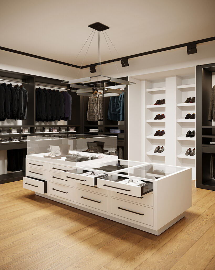 - System szuflad sprawdzi się w każdym pomieszczeniu – eleganckiej garderobie, stylowej łazience, czy ekskluzywnym pomieszczeniu wystawienniczym.