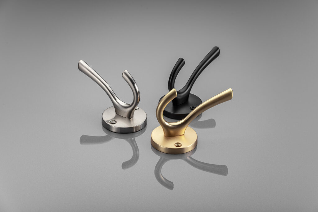 Wieszaki z kolekcji TORNA zostały zaprojektowane, tak aby pasowały do różnych stylów wnętrzarskich, co pozwala na dopasowanie ich do różnych gustów i preferencji estetycznych. Wykonane ze znalu, wieszaki dostępne są w czterech uniwersalnych kolorach: chromie, stali szczotkowanej, mosiądzu oraz czarnym macie, co sprawi, że z łatwością dopasujemy je do różnych projektów.