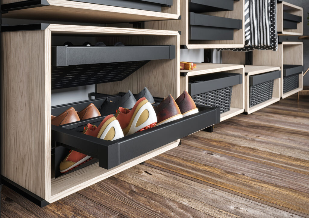 Kosze na ubrania, szuflady na obuwie czy organizery na różne drobiazgi, które są obowiązkowe w każdej szafie, także potrafią nadać wnętrzu styl, zwłaszcza gdy zaaranżujemy je w modnych ostatnio otwartych szafach i garderobach. To doskonałe połączeni designu i funkcjonalności, zwłaszcza jeśli nie mamy do dyspozycji dużej przestrzeni, a chcemy, aby mieszkanie wyglądało nowocześnie. Ażurowe i rattanowe szuflady w garderobie ELITE od GTV nadadzą każdej przestrzeni loftowy klimat, a ich modna, antracytowa barwa skomponuje się z kolorem korpusu mebli, wprowadzając powiew świeżości i stylu, szczególnie przy wyborze drewnianych i otwartych form.