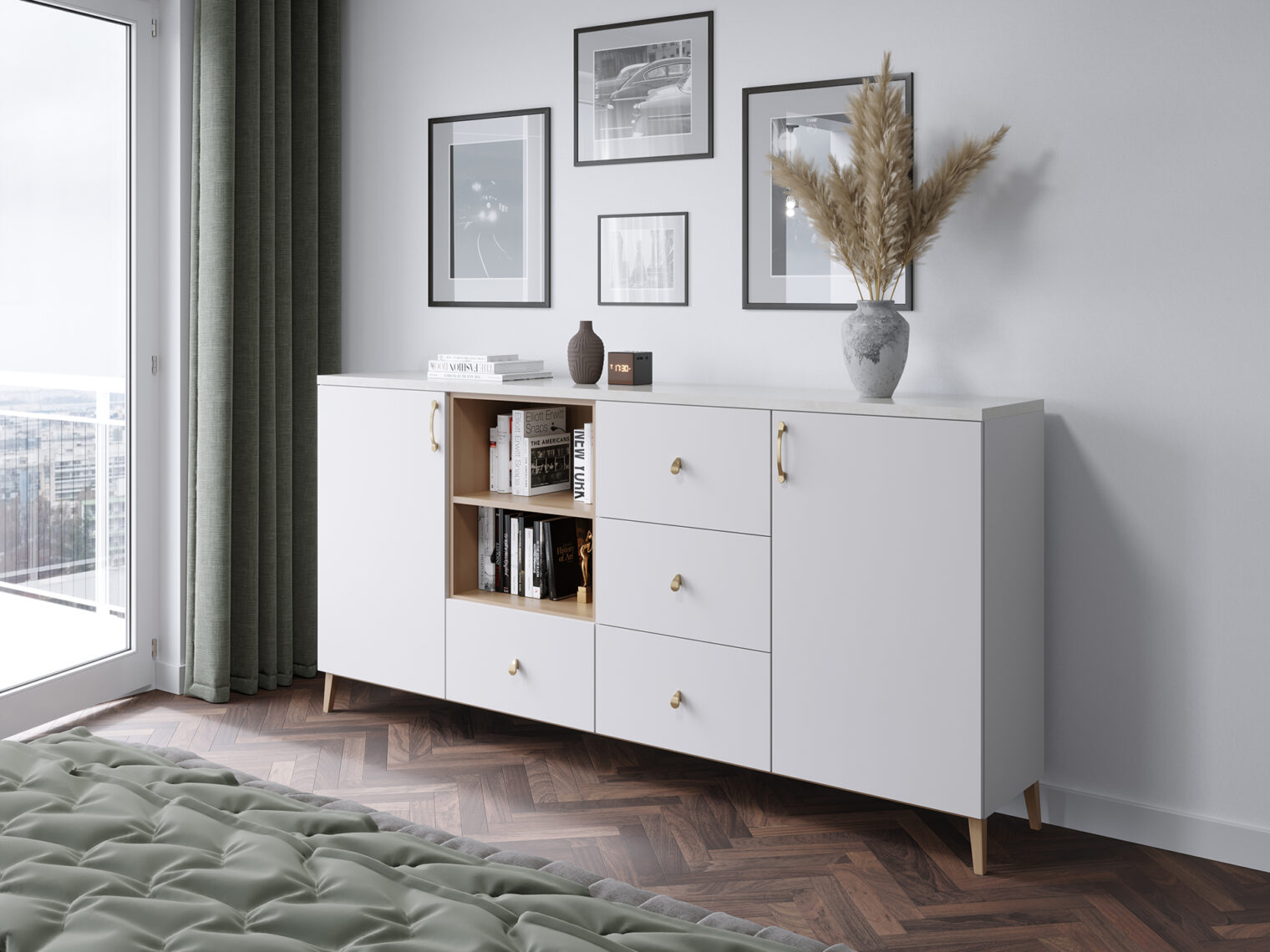 - zdecyduj się na meble z ukrytymi zawiasami do szafek. Dzięki temu nic nie będzie zaburzać spójnego wystroju wnętrza.