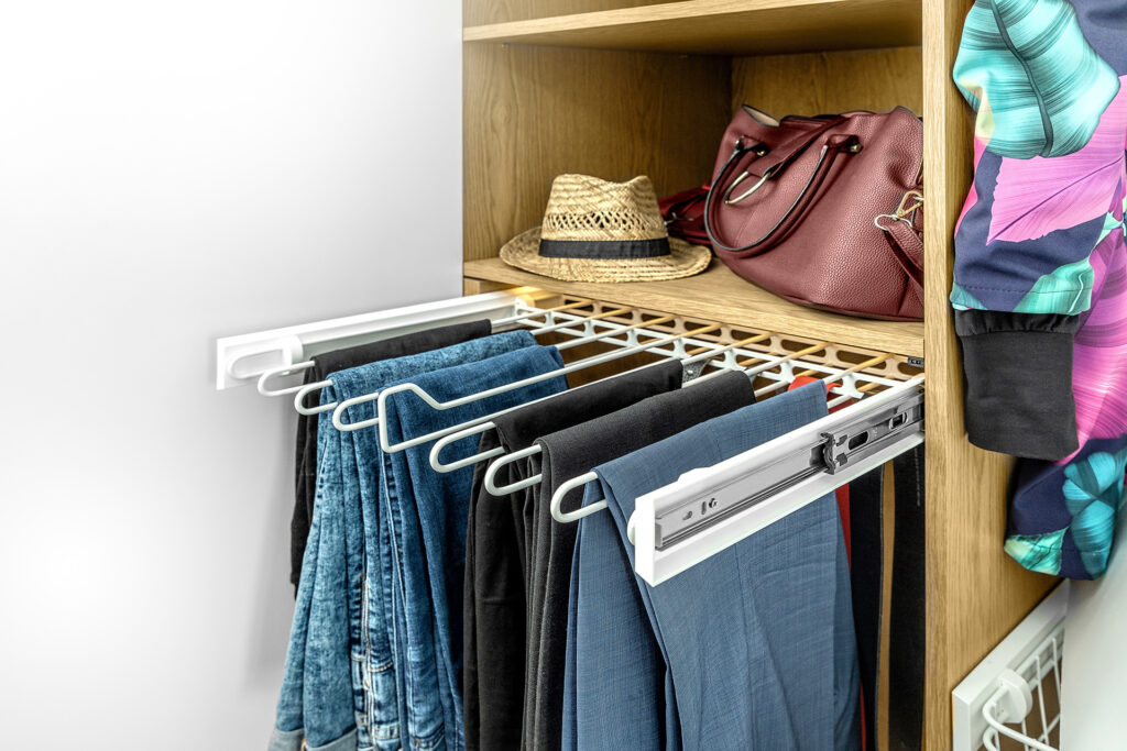 Wewnątrz przestronnej szafy